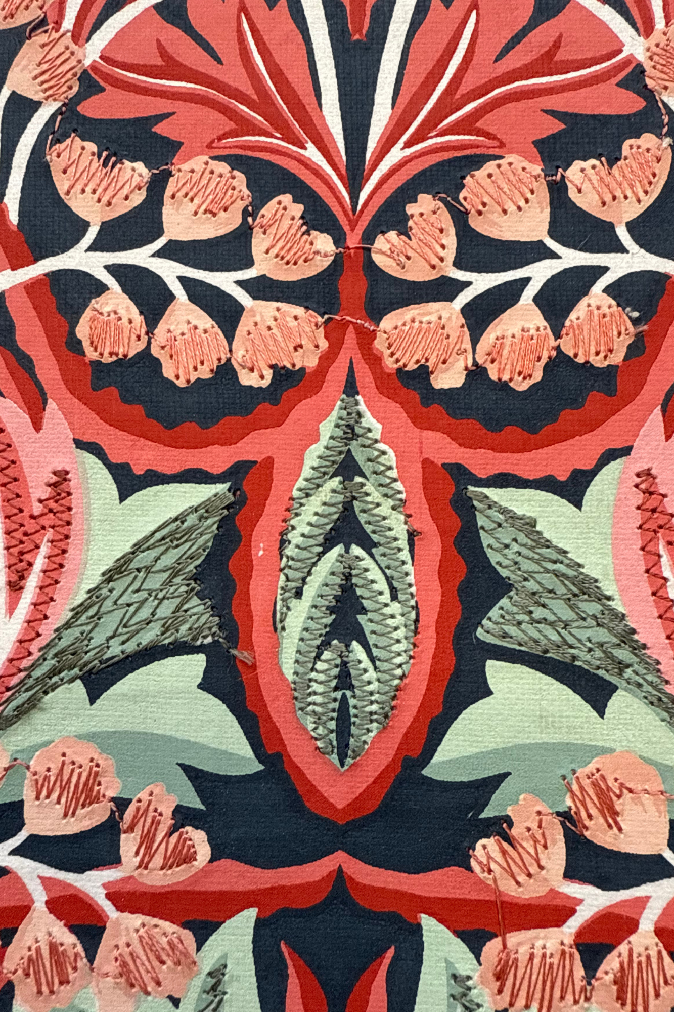 Beautiful Handmade Journal. Silkscreened and Embroidered Cover. 120 lined pages. Made from Recycled Cotton Paper.